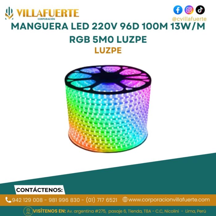 MANGUERA LED 220V 96D 100M 13W/M RGB 5M0 LUZPE