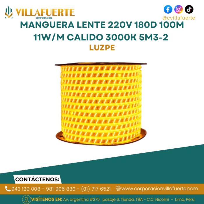 MANGUERA LENTE 220V 180D 100M 11W/M CALIDO 3000K 5M3-2 LUZPE