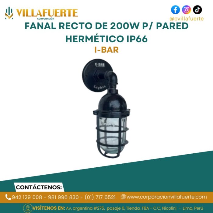 FANAL RECTO DE 200W P/ PARED HERMÉTICO IP66