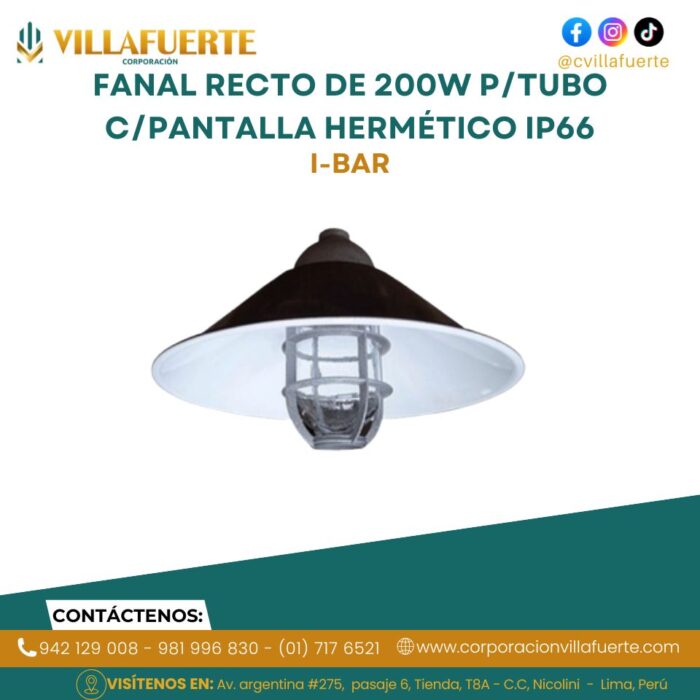 FANAL RECTO DE 200W P/TUBO C/PANTALLA HERMÉTICO IP66