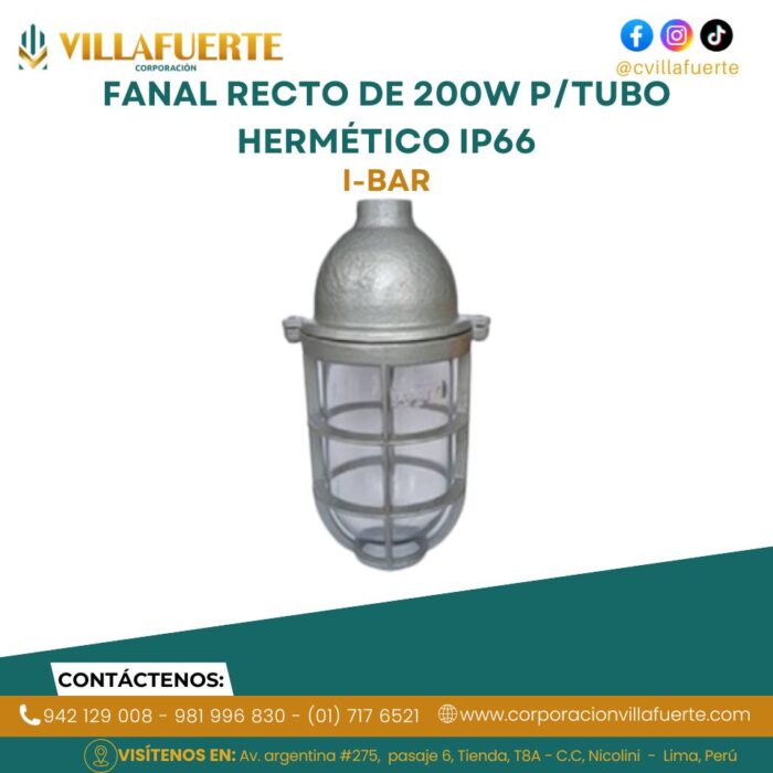 FANAL RECTO DE 200W P/TUBO HERMÉTICO IP66