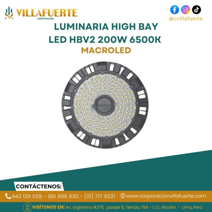 LUMINARIA HIGH BAY LED HBV2 200W 6500K 90° IP65 100-240V MACROLED