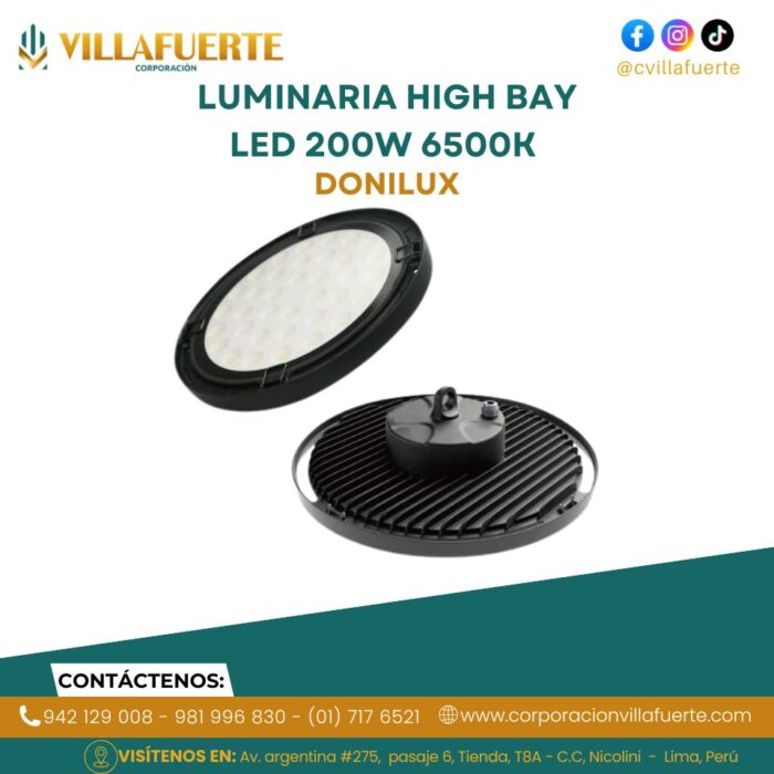 LUMINARIA HIGH BAY LED 200W IP65 6500K 25,000 LÚMENES 100-265V 50-60HZ DONILUX