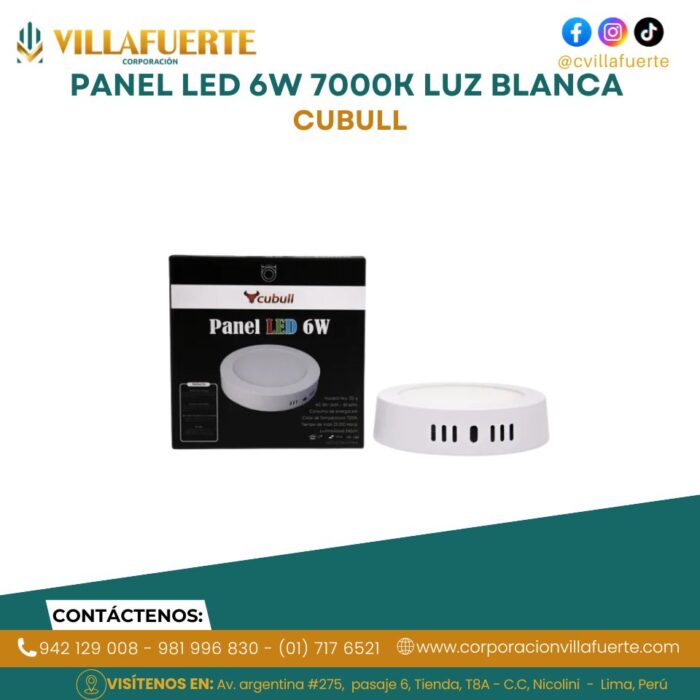 PANEL LED 6W 7000K LUZ BLANCA CUBULL