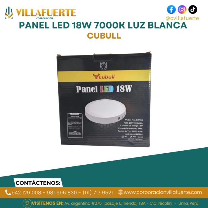 PANEL LED 18W 7000K LUZ BLANCA CUBULL
