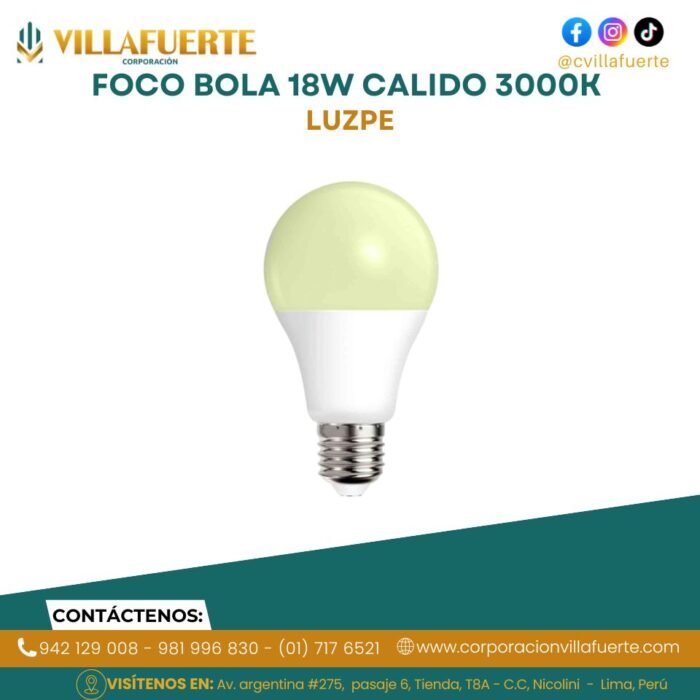 FOCO BOLA 18W CALIDO 3000K LUZPE