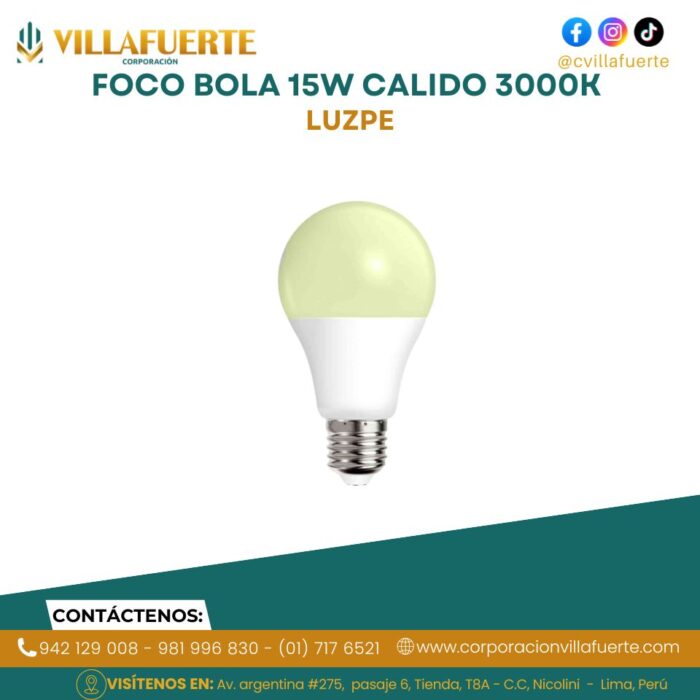 FOCO BOLA 15W CALIDO 3000K LUZPE