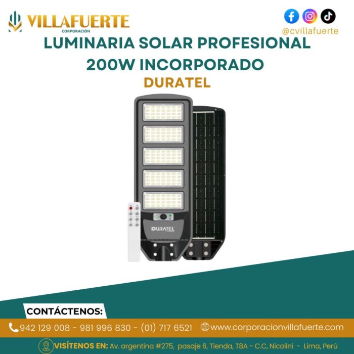 LUMINARIA SOLAR PROFESIONAL 200W INCORPORADO DURATEL