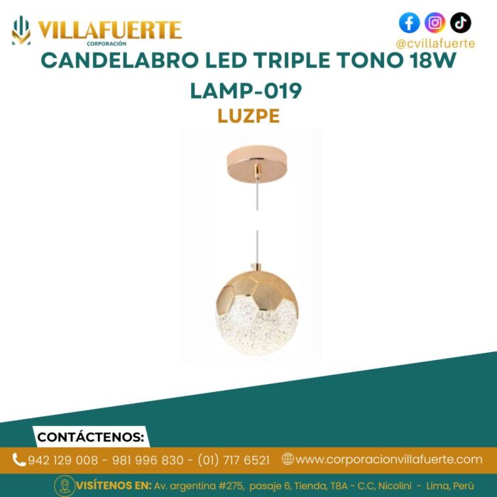 CANDELABRO LED TRIPLE TONO 18W LAMP-019 LUZPE