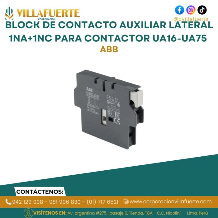 Block de contacto auxiliar lateral 1NA+1NC para contactor UA16-UA75 ABB