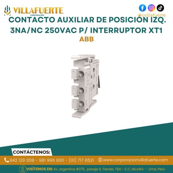 Contacto auxiliar de posición izquierda 3NA/NC 250Vac p/Interruptor XT1 ABB