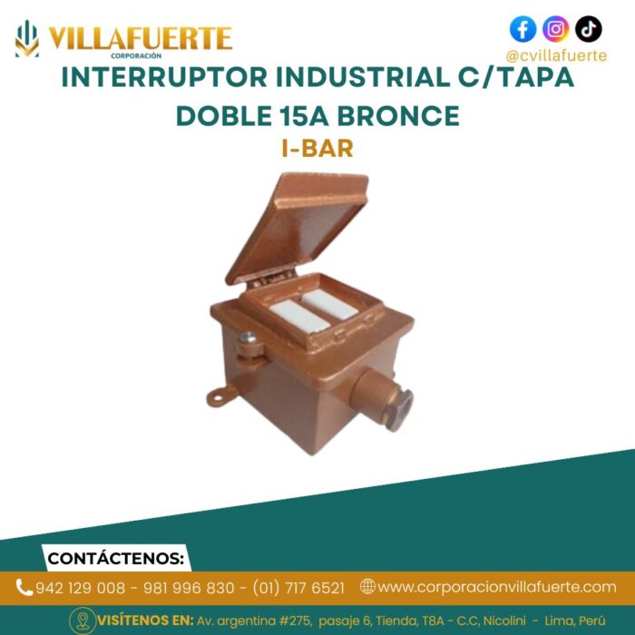 INTERRUPTOR INDUSTRIAL C/TAPA DOBLE 15A BRONCE