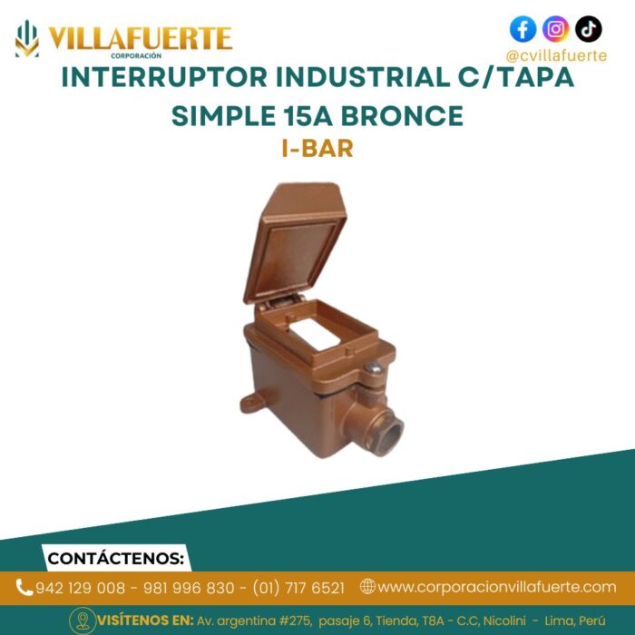 INTERRUPTOR INDUSTRIAL C/TAPA SIMPLE 15A BRONCE