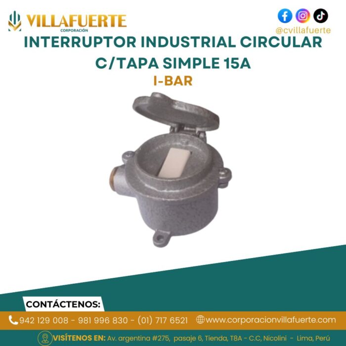 INTERRUPTOR INDUSTRIAL CIRCULAR C/TAPA SIMPLE 15A