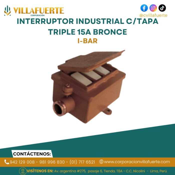 INTERRUPTOR INDUSTRIAL C/TAPA TRIPLE 15A BRONCE