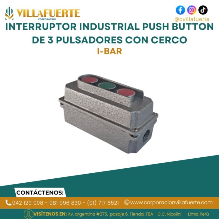 INTERRUPTOR INDUSTRIAL PUSH BUTTON DE 3 PULSADORES CON CERCO