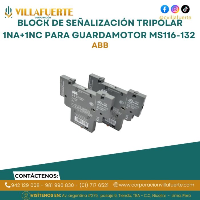 Block de señalización tripolar 1NA+1NC para guardamotor MS116-132 ABB