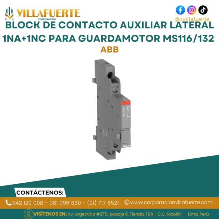 Block de contacto auxiliar lateral 1NA+1NC para guardamotor MS116/132 ABB
