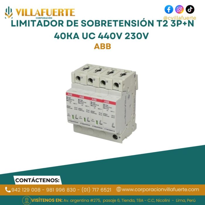 Limitador de sobretensión T2 3P+N 40kA Uc 440V 230V ABB