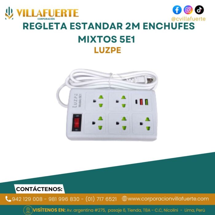 REGLETA ESTANDAR 2M ENCHUFES MIXTOS 5E1 LUZPE