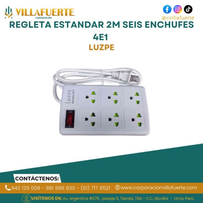 REGLETA ESTANDAR 2M SEIS ENCHUFES 4E1 LUZPE