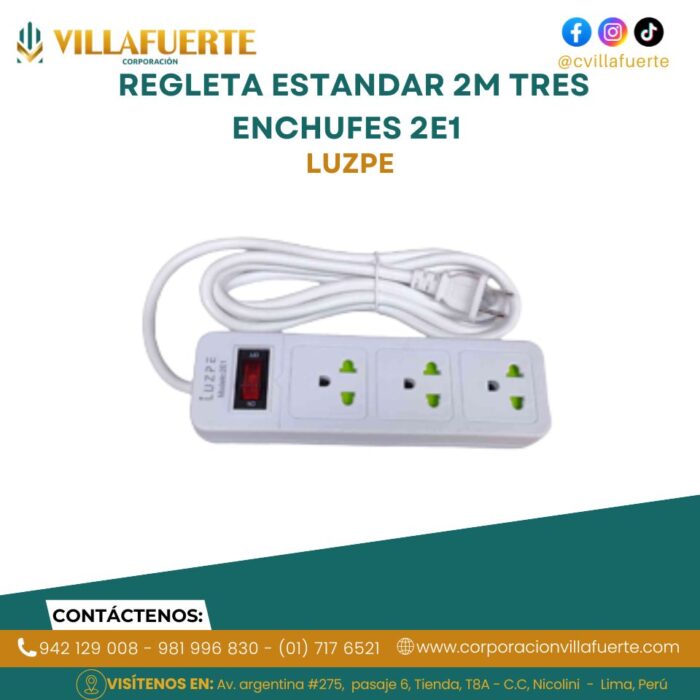 REGLETA ESTANDAR 2M TRES ENCHUFES 2E1 LUZPE