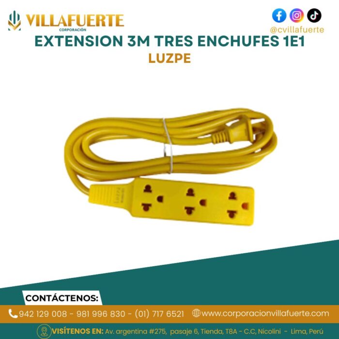 EXTENSION 3M TRES ENCHUFES 1E1 LUZPE