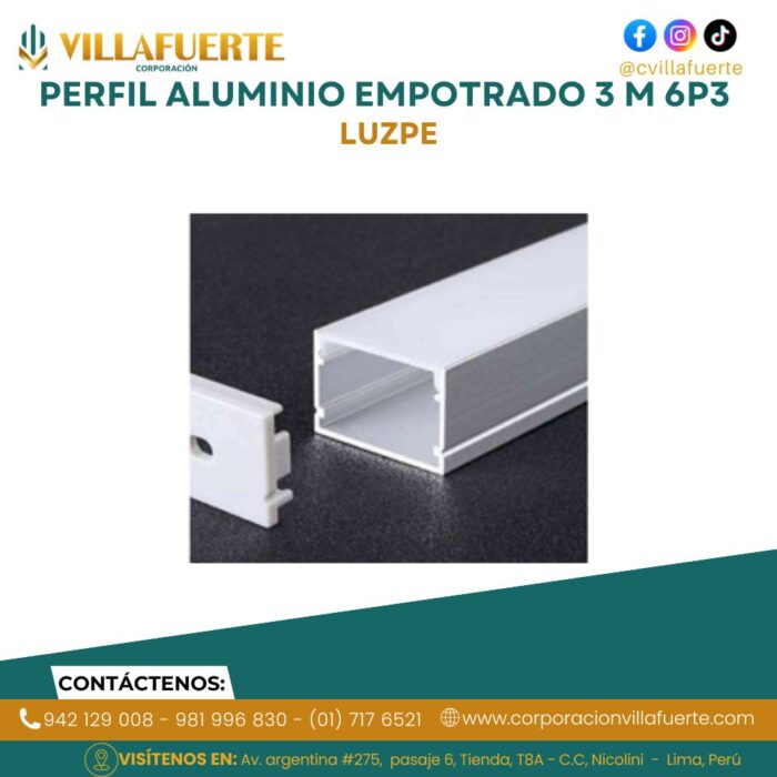 PERFIL ALUMINIO EMPOTRADO 3 M 6P3 LUZPE