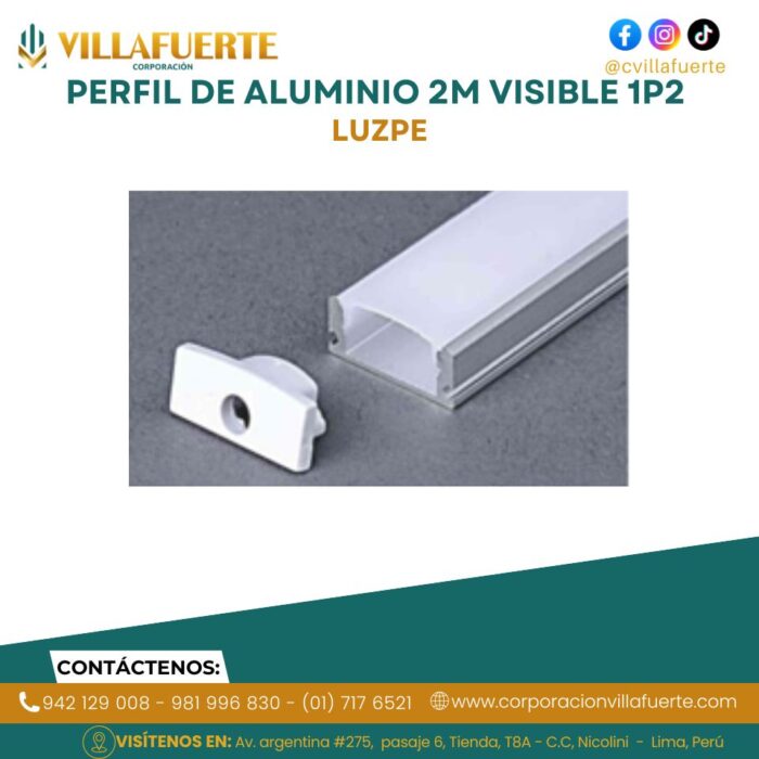 PERFIL DE ALUMINIO 2M VISIBLE 1P2 LUZPE