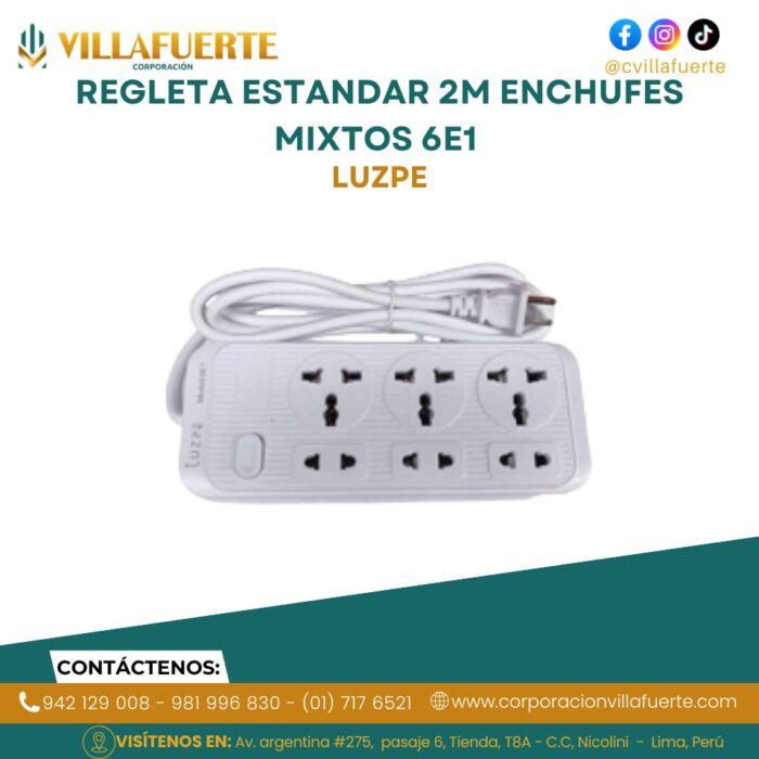 REGLETA ESTANDAR 2M ENCHUFES MIXTOS 6E1 LUZPE