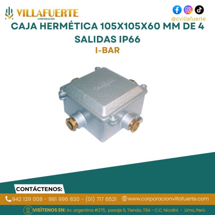CAJA HERMÉTICA 105x105x60 mm DE 4 SALIDAS IP66