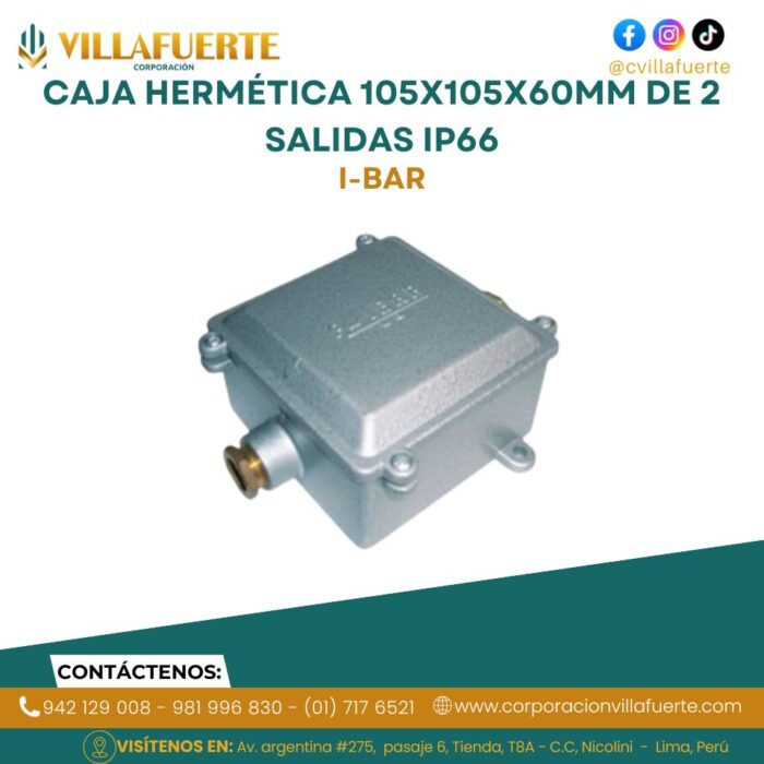 CAJA HERMÉTICA 105x105x60mm DE 2 SALIDAS IP66