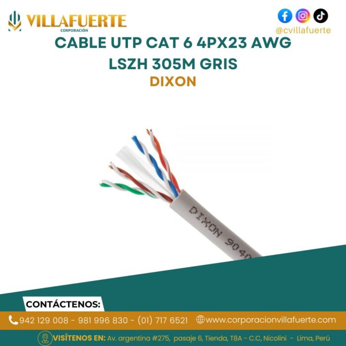 CABLE UTP CAT 6 4PX23 AWG LSZH 305M DIXON GRIS