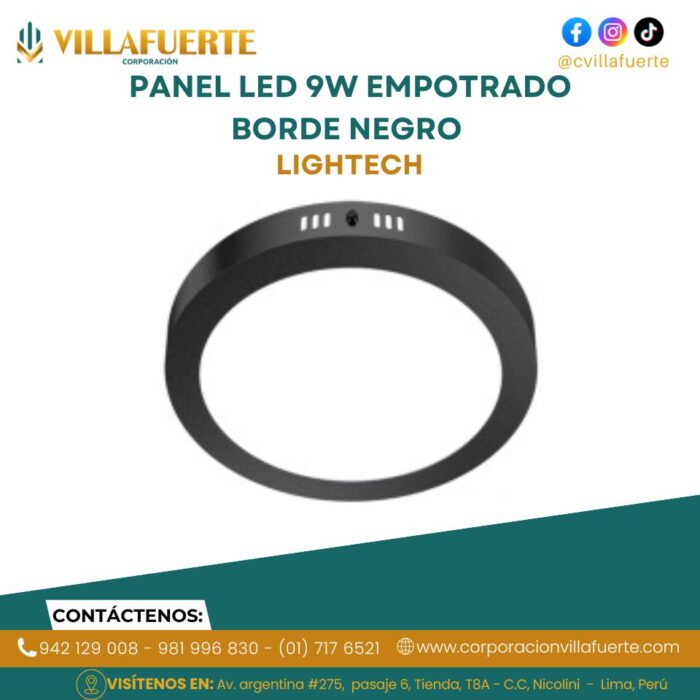 PANEL LED 9W EMPOTRADO BORDE NEGRO LIGHTECH