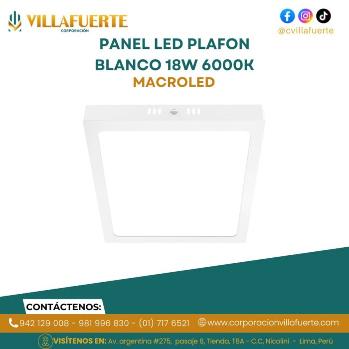 PANEL LED PLAFON BLANCO 18W 6000K MACROLED