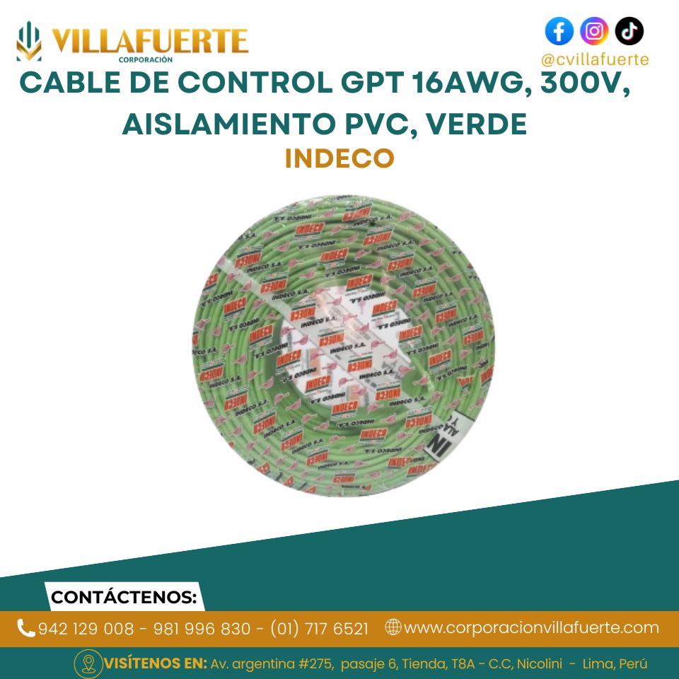Cable de control GPT 16AWG, 300V, aislamiento PVC, verde