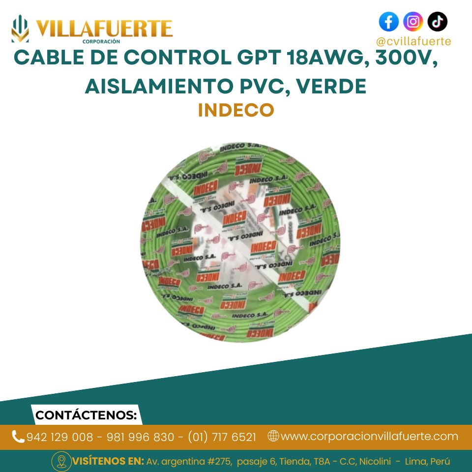 Cable de control GPT 18AWG, 300V, aislamiento PVC, verde