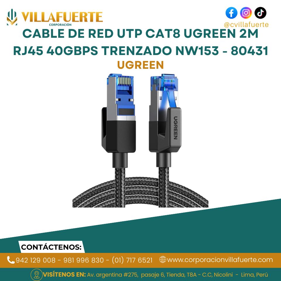 Cable de Red UTP Cat8 Ugreen 2m RJ45 40Gbps Trenzado NW153 – 80431