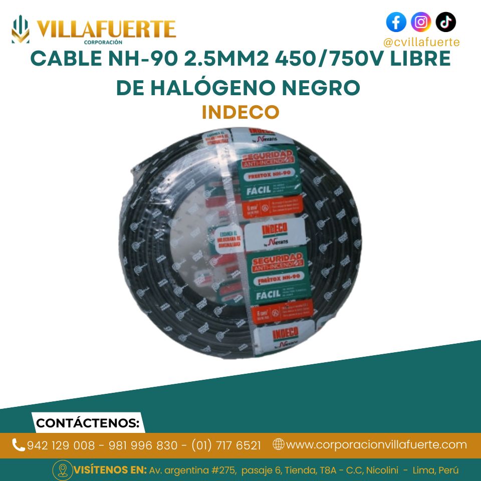 Cable NH-90 2.5mm2 450/750V libre de halógeno negro INDECO