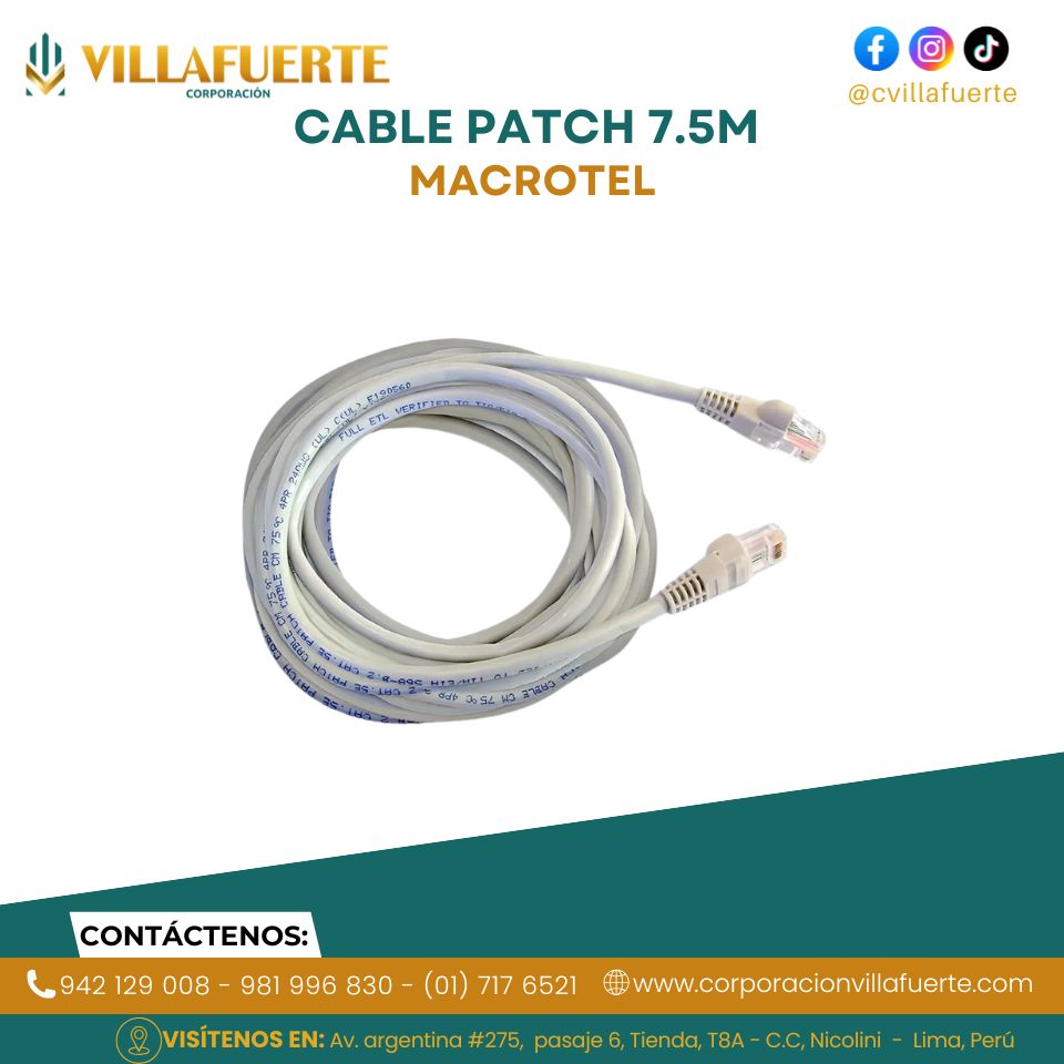 • Modelo: Patch Cord. 7.5mts (cable De Red)