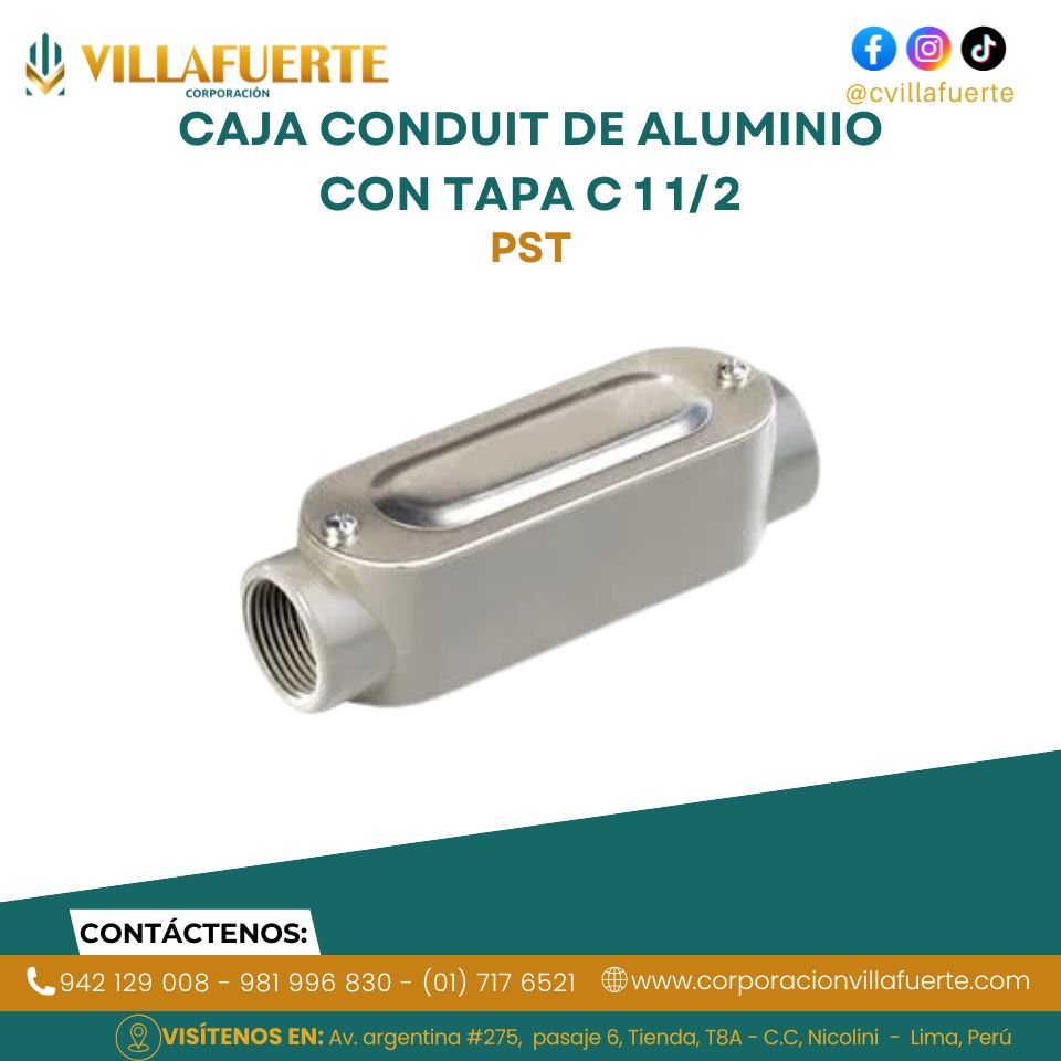 La Caja Conduit de Aluminio con Tapa tipo C de 1 1/2 pulgadas está diseñada para alojar y proteger empalmes eléctricos en sistemas de tubería conduit metálica. Su configuración recta facilita la continuidad del cableado en línea, permitiendo acceso práctico para inspección y mantenimiento. Fabricada en aluminio fundido de alta resistencia, ofrece excelente protección mecánica y resistencia a la corrosión en instalaciones residenciales, comerciales e industriales.
