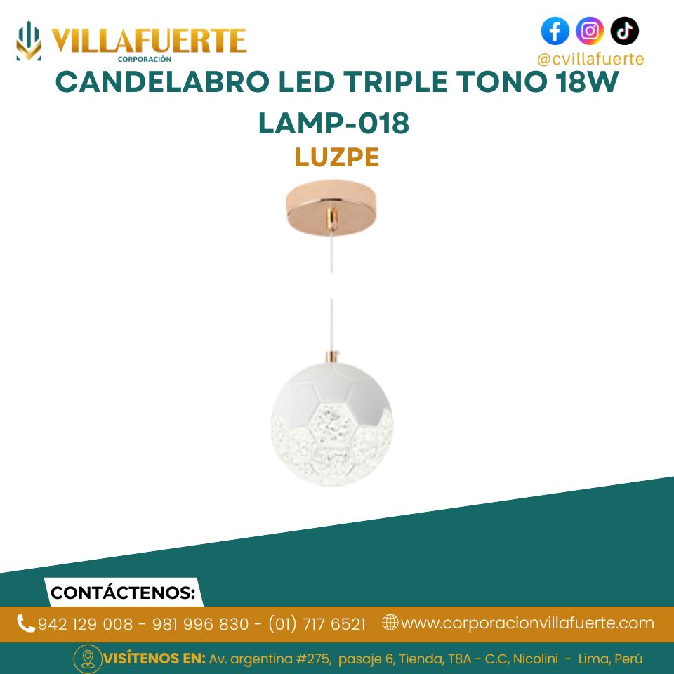 CANDELABRO LED TRIPLE TONO 18W LAMP-018 LUZPE