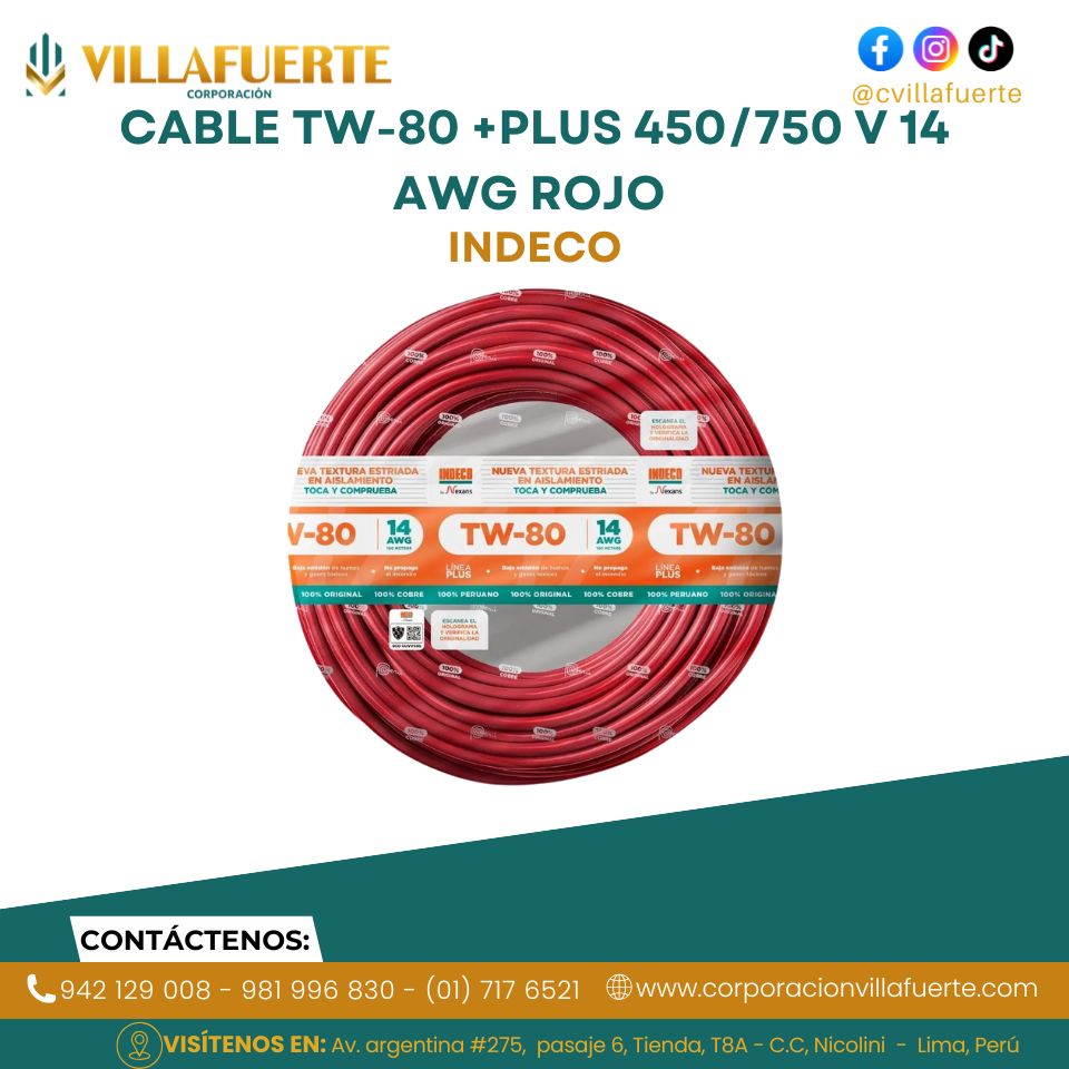 Cable TW-80 +plus 450/750 V 14 AWG Rojo INDECO
