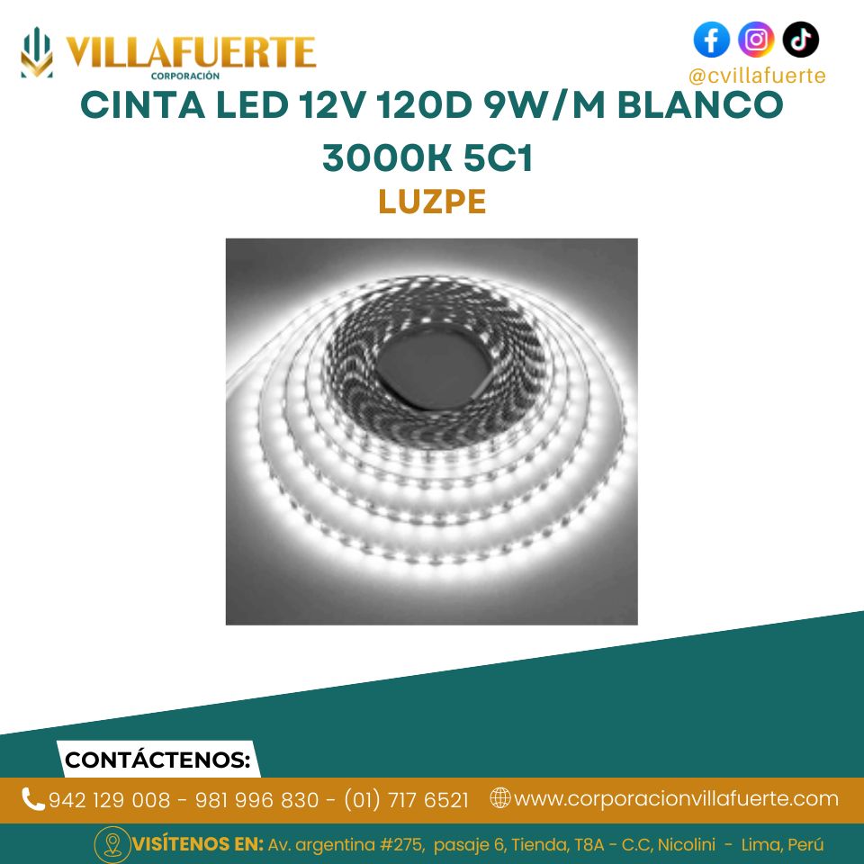 CINTA LED 12V 120D 9W/M BLANCO 3000K 5C1 LUZPE