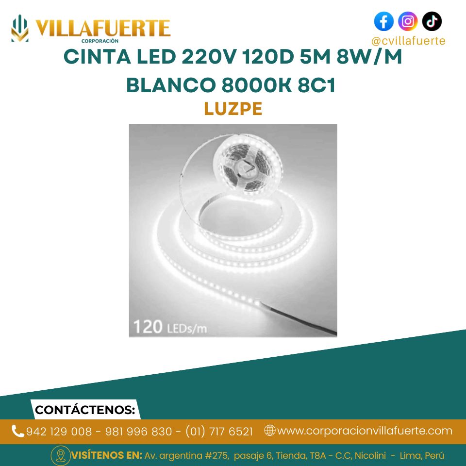 CINTA LED 220V 120D 5M 9W/M NEUTRA 8C2 LUZPE