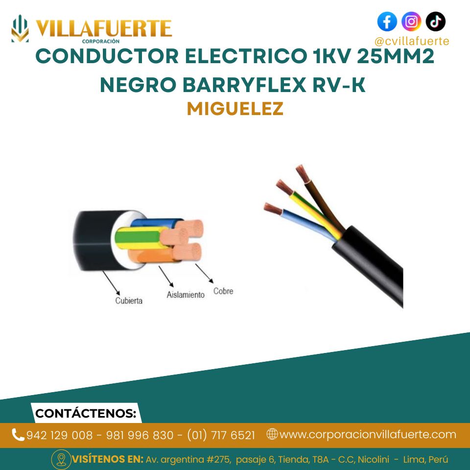 CONDUCTOR ELECTRICO 1KV 25MM2 NEGRO BARRYFLEX RV-K MIGUELEZ