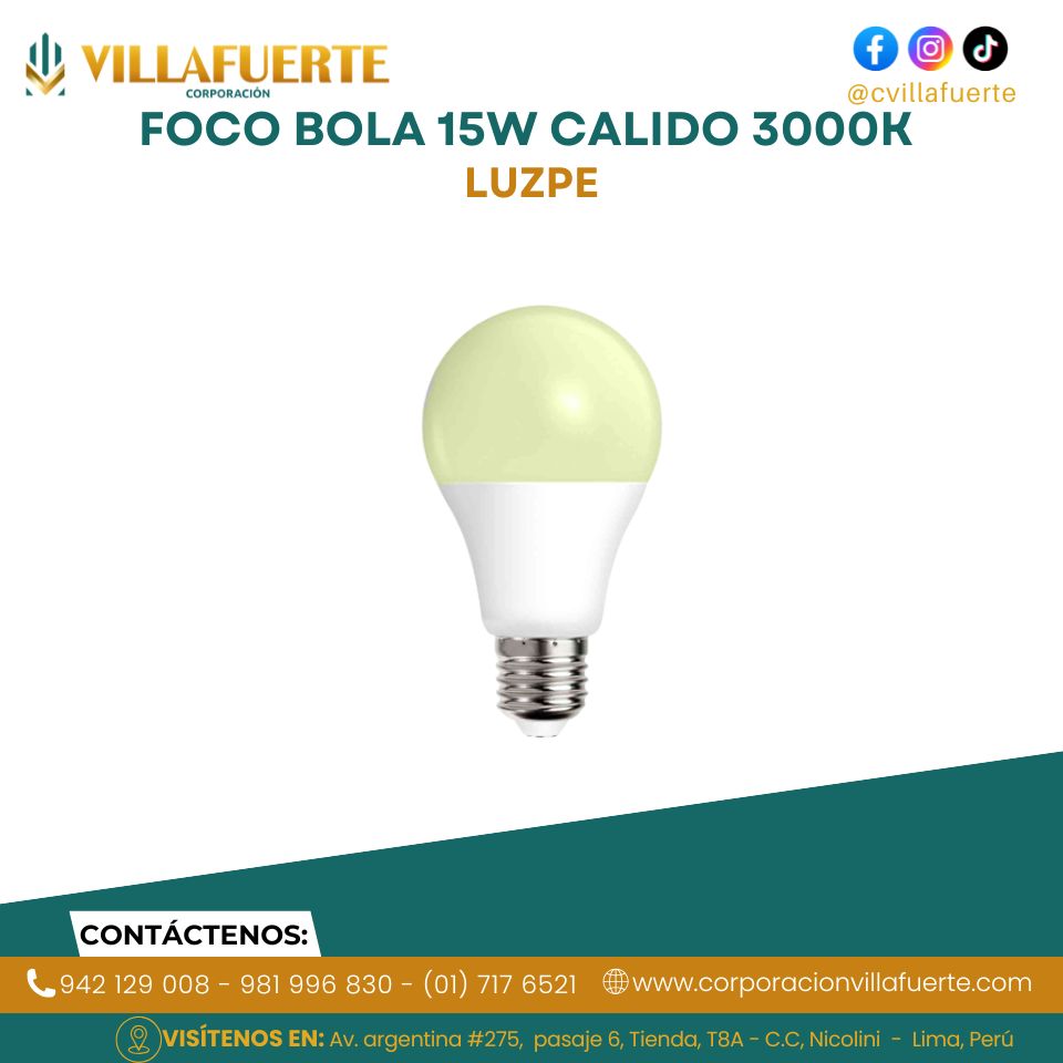 FOCO BOLA 15W CALIDO 3000K LUZPE
