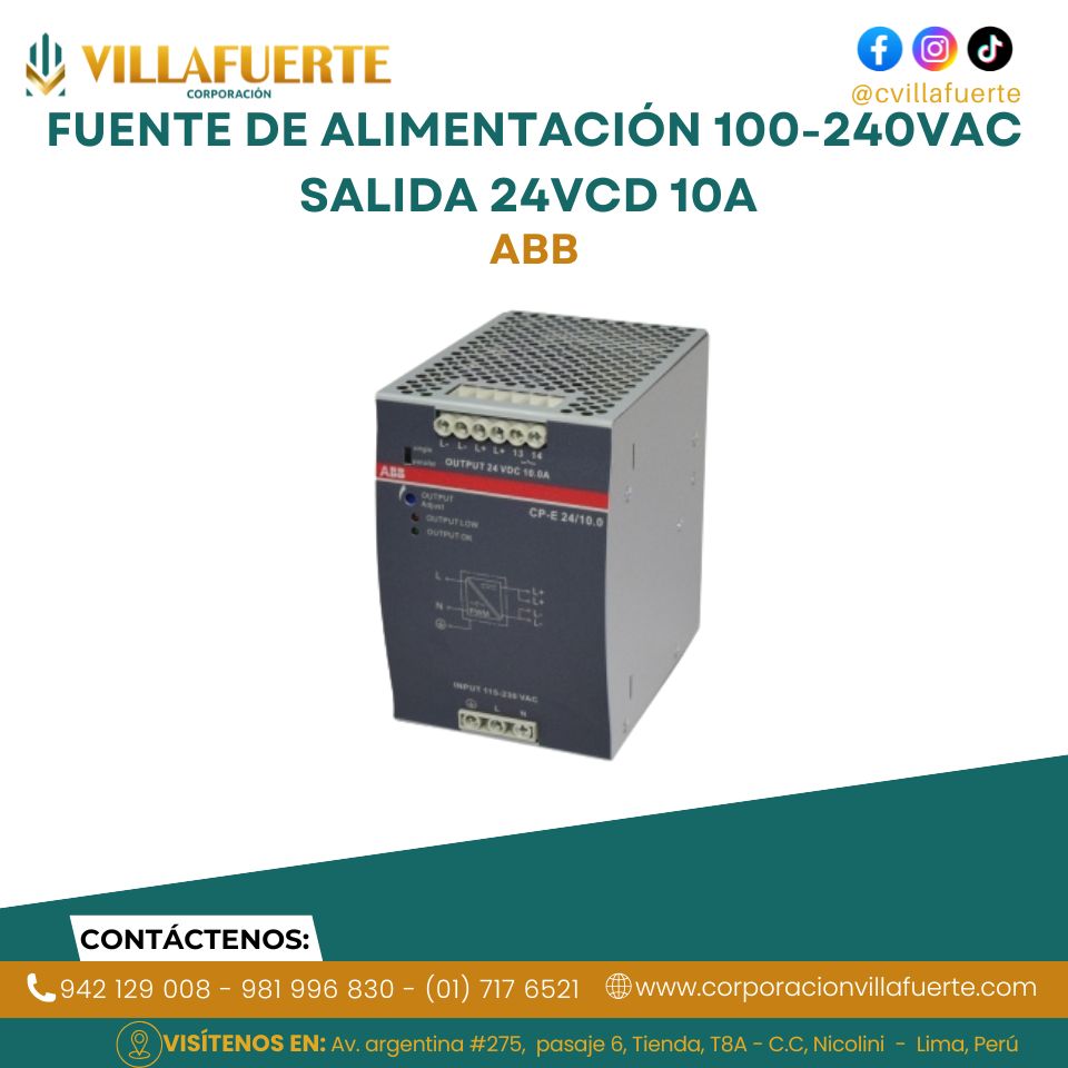 Fuente de alimentación 100-240VAC salida 24VCD 10A ABB