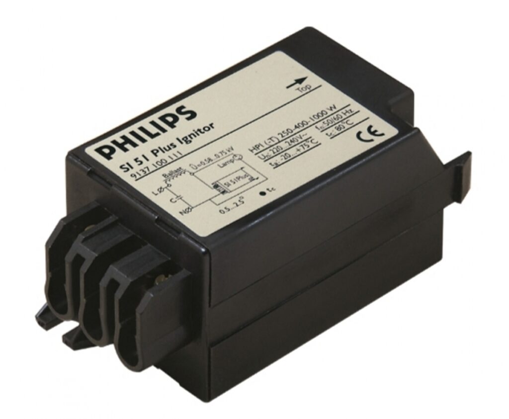 El Ignitor SI 51 Plus HPI(-T) 250 400W Philips es un dispositivo de encendido diseñado para lámparas de alta intensidad de descarga (HID), específicamente HPI-T de 250 a 400 W. Garantiza un arranque rápido y seguro de la lámpara, prolongando su vida útil y asegurando un rendimiento estable. Su diseño confiable es ideal para aplicaciones industriales y de alumbrado público que requieren eficiencia y durabilidad.