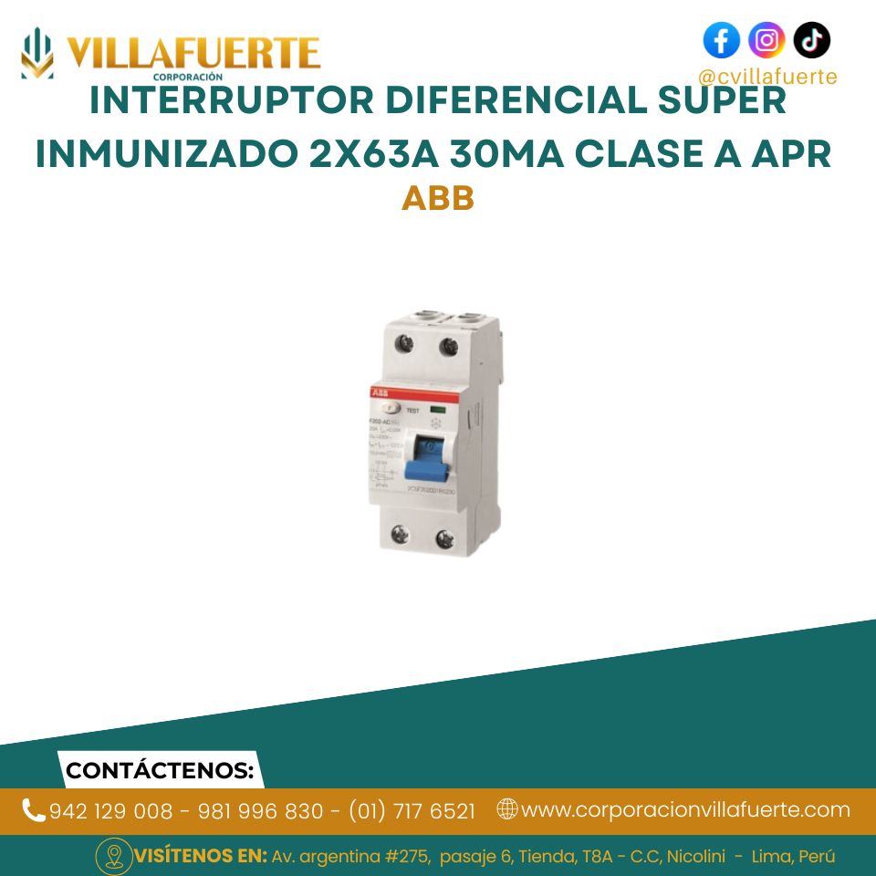 Interruptor diferencial super inmunizado 2x63A 30mA clase A APR ABB